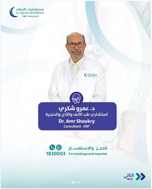 استشاري أنف وأذن وحنجرة ورئيس قسم الأنف والأذن والحنجرة