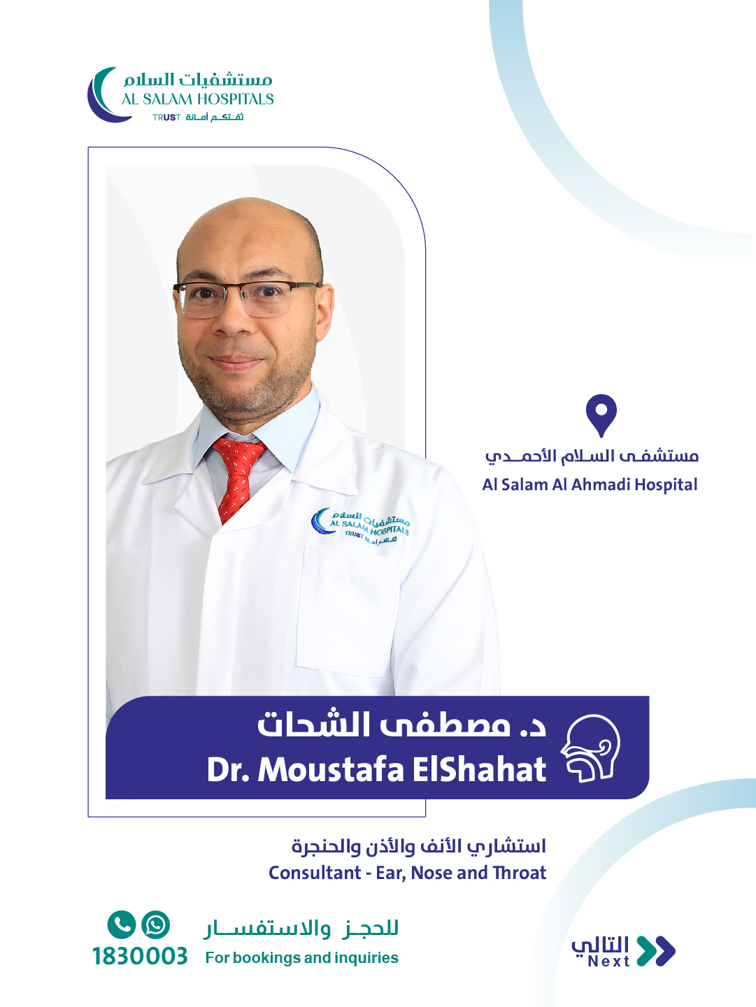 استشاري الأنف والأذن والحنجرة ورئيس قسم الأنف والأذن والحنجرة