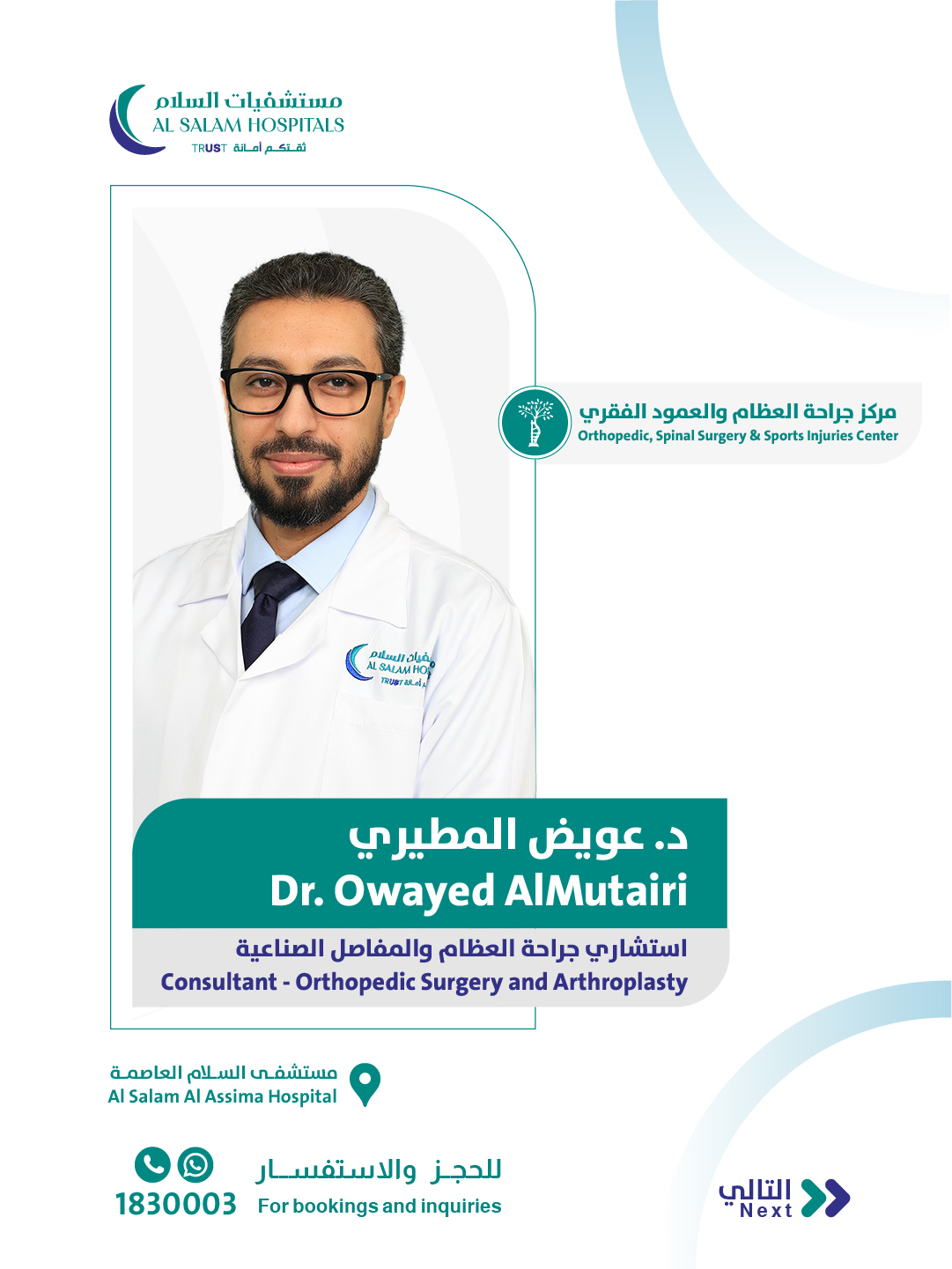 استشاري جراحة العظام وجراحة العمود الفقري ورئيس مركز جراحة العظام والعمود الفقري وإصابات الملاعب