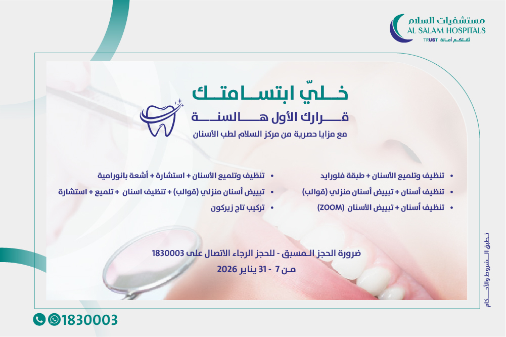 خلّي ابتسامتك قرارك الأول هالسنة مع مزايا حصرية من مركز السلام لطب الأسنان