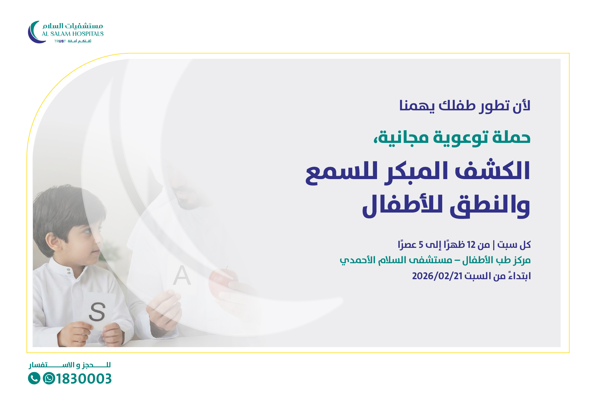 حملة توعوية مجانية، الكشف المبكر للسمع والنطق للأطفال